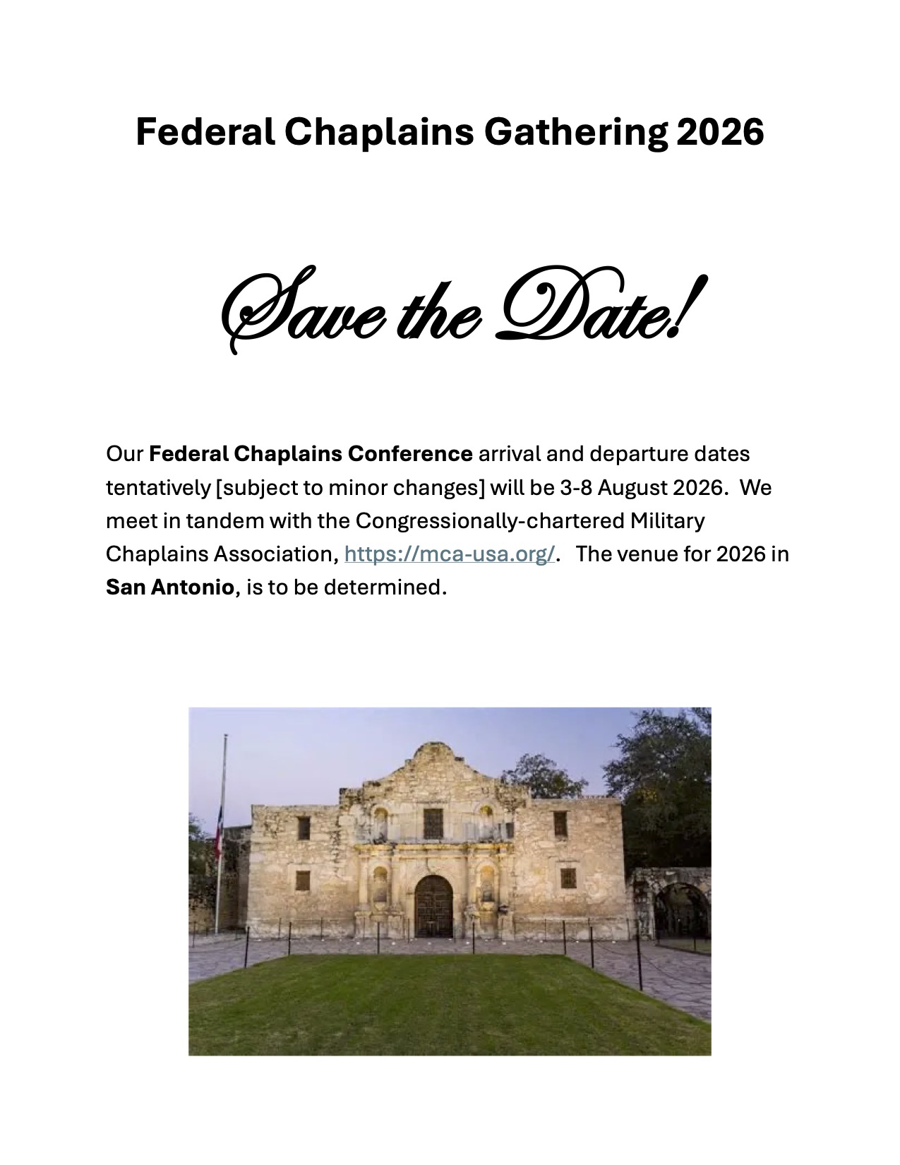 VERY IMPORTANT: This page has 3 sections. A – Political Activities Guidance; B – Information about the Annual Federal Conference; and C – Dave’s Federal Chaplains Blog.
