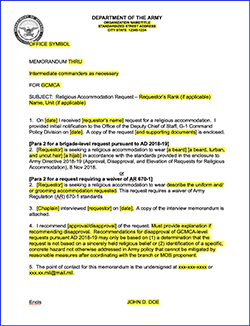 Army Directive 2018-19 (Approval, Disapproval, and Elevation of Requests for Religious Accommodation) [PDF]