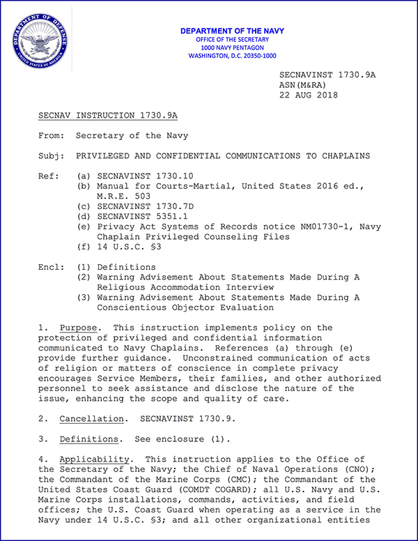 A new Chief of Chaplains document has just been published on Professional Navy Chaplains Accountability.