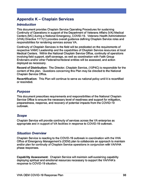 Guidance from the Veterans Health Administration re Accommodations MESSAGE FROM THE OFFICE OF THE UNDER SECRETARY FOR HEALTH February 7, 2022 Reasonable Accommodation Processing for COVID-19 Vaccination Mandate The health and safety of Veterans and staff continue to be our highest priority during the pandemic. Despite use of highly protective masks, distancing, and other safety measures, we have been experiencing greater outbreaks of hospital-acquired infections in both our inpatient units and community living centers in association with the increased prevalence of the Omicron variant. As future variants are expected to emerge, such as the recently appearing BA.2 variant of Omicron, we must do everything we can to protect the Veterans we serve and our co-workers in patient care positions. Recently confirmed by CDC medical studies, vaccination remains the best defense against COVID-19, including variants like Delta and Omicron. Employees requesting an accommodation to being vaccinated against COVID-19 will have their request treated as a request for “reasonable accommodation” and reviewed accordingly. During recent surges in COVID-19 cases from Delta and Omicron variants, VA paused the processing of reasonable accommodation requests to ensure Veterans could receive the care they needed with necessary staffing. Today, we are resuming the processing of COVID-19 vaccine reasonable accommodations requests with a focus on ensuring employees’ rights while optimizing Veteran care and safety. We will process these requests in a timely manner, generally in the order they were received. Typically, the time frame for processing a request is 30 calendar days from the initiation of the review process by the management official or supervisor. Please note that an employee’s approved accommodation request may result in reassignment to areas within the VA where it is safe for unvaccinated staff to work. VA has listed specific positions within VA Form 10230a (Undue Hardship Review) where the standard accommodation of masking, maintaining physical distance, testing, and following other required safety protocols is either not possible or does not sufficiently mitigate the safety risk posed to patients and/or other staff members. While we will try to accommodate approved reasonable accommodation reassignment, positions cannot be guaranteed. We will continue to be transparent with staff and Veterans as reasonable accommodation requests are reviewed and processed. Management officials or supervisors will notify staff regarding whether reasonable accommodation requests are approved or denied, as well as potential next steps. Thank you for everything you continue to do to serve Veterans and protect fellow team members through the pandemic. Steven L. Lieberman, M.D. | |