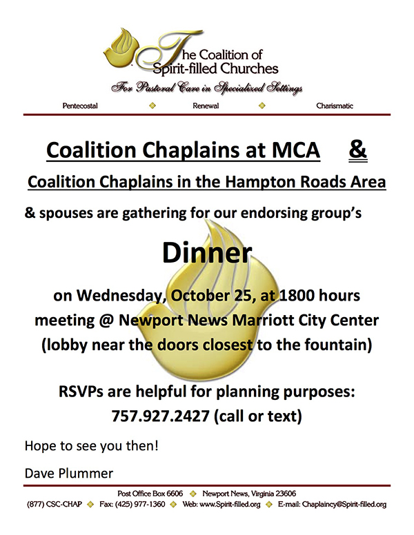 With the repeal of DADT two years ago and then the recent ruling against DOMA and California’s Proposition 8 by the US Supreme Court, we have recently been contacted by a growing number of chaplains for guidance on what to do when they are asked to do weddings, conduct retreats, offer various liturgical services, etc., when Lesbians, Gays, Bisexuals, and Transgendered (LGBT) military members or their loved ones are involved. The response to those requests have been on The Coalition of Spirit-filled Churches' website for almost two years, but you have to know where to look. We seek to make it clearer with this new button and accompanying page. We are not a denomination. As such, apart from a very basic statement of neo-Pentecostal faith (or an openness to the same), we do not get into denominational, our groups', or even a single congregation's doctrine, tradition, culture, politics, or policies and practices. We are not legally configured to dictate or impose various policies on our member churches — or their chaplains. Thus, we simply state that you need to follow the doctrine and practice of your ordaining body — which is formally affiliated with us. (See "2011 CSC Policy on Political Statements and Endorsing Agency Policies" on https://www.spirit-filled.org/chapnews.html.) So basically whatever your ordaining community accepts or directs, as members of The Coalition, we will accept. The other piece here is that we do not want you to violate your conscience, either. If you feel you are being pressured to do so, we need to hear about it. We WILL support you as you are following the expectations of your ordaining church. Last, we expect you to be respectful of and show care and genuine empathy to ALL who approach you for ministry. If you cannot perform a service that you are being asked to do, that is okay, but we expect you to refer that person or couple or family to another chaplain or clergy who can. If chaplains are not approachable, they have very limited usefulness to the very people — or institution — to whom they are charged with serving. We hope this is helpful and makes sense. We welcome dialog on this topic or anything. Blessings, |