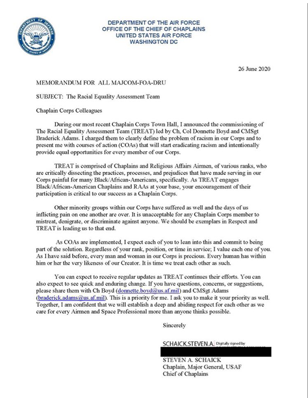 | Guidance from the Air Force Chief of Chaplains Office | |