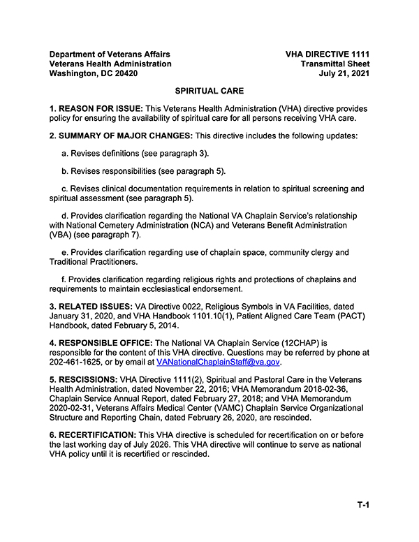 This short article was delivered at the Military Chaplains Association conference in Arlington, VA this past October and I heard it live from Prof. Robert Tuttle of George Washington University (https://www.law.gwu.edu/robert-w-tuttle), an expert on Constitutional law with a specialization of Church and State issues. I urge all military chaplains to become familiar with this article: Ethics and Religious Counseling in a Pluralistic Environment [PDF]. The whole edition and past editions can be found at https://www.mca-usa.org/magazine/. Also, the MCA is an excellent professional organization that all military and VA chaplains should join, in my opinion. Dave | |